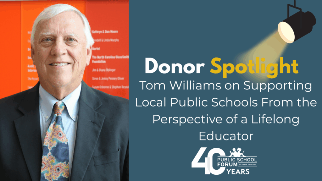 The Public School Forum of North Carolina is honored to feature longtime educator and steadfast advocate Tom Williams in our Donor Spotlight series. From his unexpected move to North Carolina […]