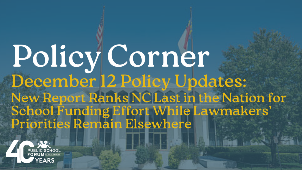 Democracy, Representation, and Public Education This week, the NCGA reconvened for its scheduled October session. Instead of finalizing a long-overdue state budget, lawmakers approved a new congressional map for the […]