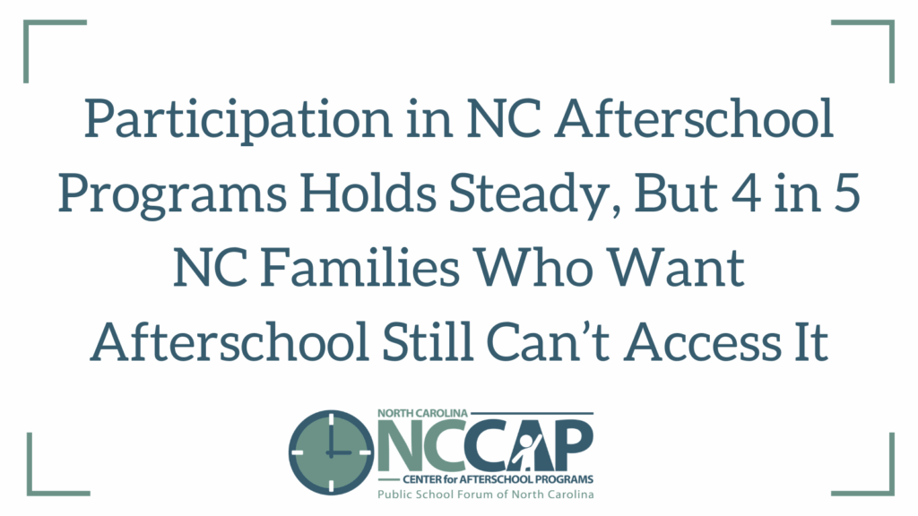 Participation in NC Afterschool Programs Holds Steady, But 4 in 5 NC Families Who Want Afterschool Still Can’t Access It