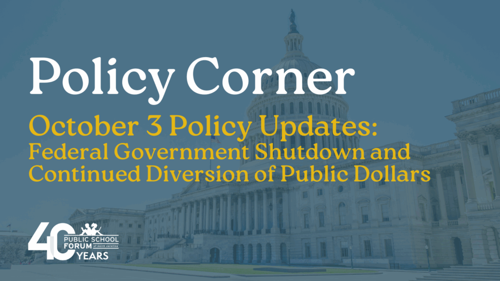 Democracy, Representation, and Public Education This week, the NCGA reconvened for its scheduled October session. Instead of finalizing a long-overdue state budget, lawmakers approved a new congressional map for the […]