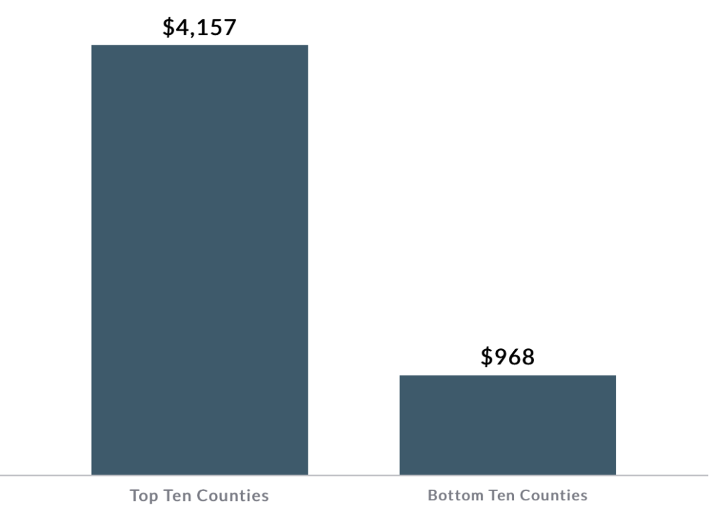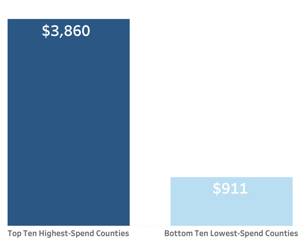 In 2022-23, Orange County, the highest spending county in the state, spent $294 more per student than the seven lowest spending counties combined.
