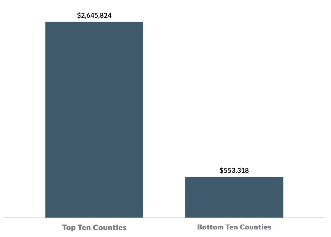 In recent years, our annual studies have consistently identified several key trends that have led to deepened educational inequity across districts over time. First, there is a large and widening gap between wealthier counties and those with lower levels of wealth. As a result, there are significant disparities in the ability of counties with different levels of wealth to provide their schools with the resources they need, particularly given the increasing role of local spending over time. We have also found that lower wealth counties tax themselves at higher rates than wealthier counties, but are still unable to generate comparable tax revenue to wealthier counties that make less taxing effort. The ten poorest districts taxed themselves at 1.7 times the average tax rate of the ten wealthiest counties in 2022-23. Residents living in lower wealth districts face substantially greater financial burden to support public education while still finding that their schools are more poorly resourced than those in wealthier counties.